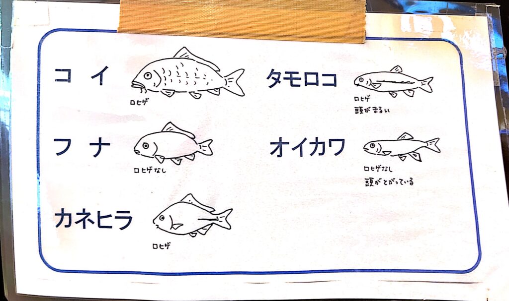 どれも同じくコイ科魚類です。見た目が似ている魚が多いことを考慮してか見分け方の解説パネルが設置されており良心的ですね。