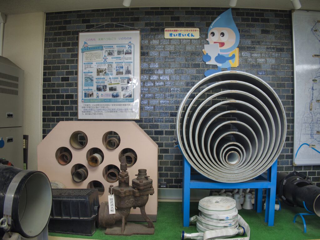 それ以外の展示としては河川水がどのように飲み水になるのかとか下水がどのように処理されているのかとか、マンホールや下水管などの解説があり、みていて面白い展示も多いです。