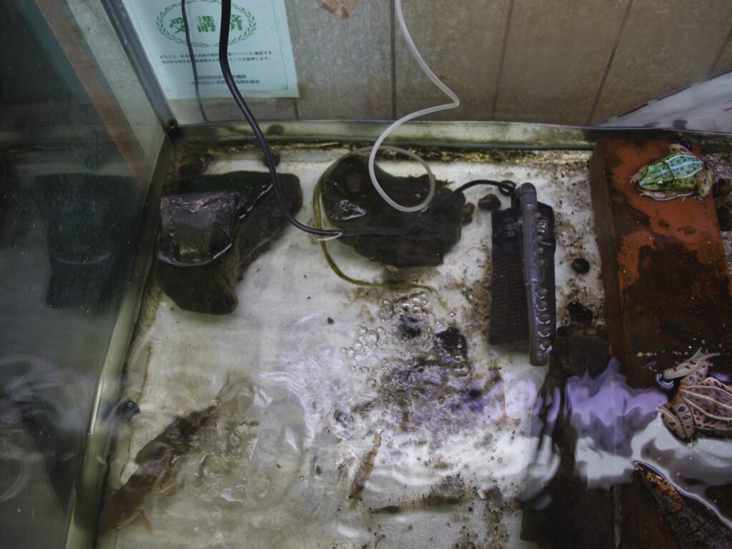 その理由はというと、水槽には「スッポンの子ども」も一緒に飼育されているとのこと。浅瀬を好むスッポンにあわせて水を少なめにしているようです。