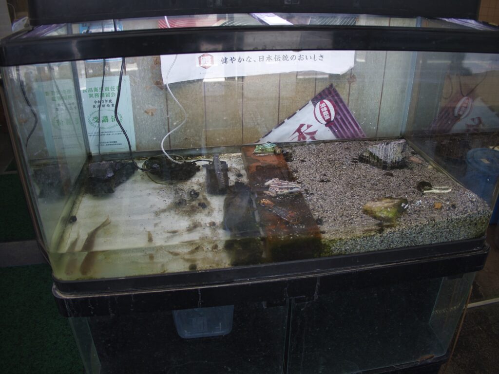 さて、魚の加工品だけでなく、なんと店内には小さな水槽展示もありました。