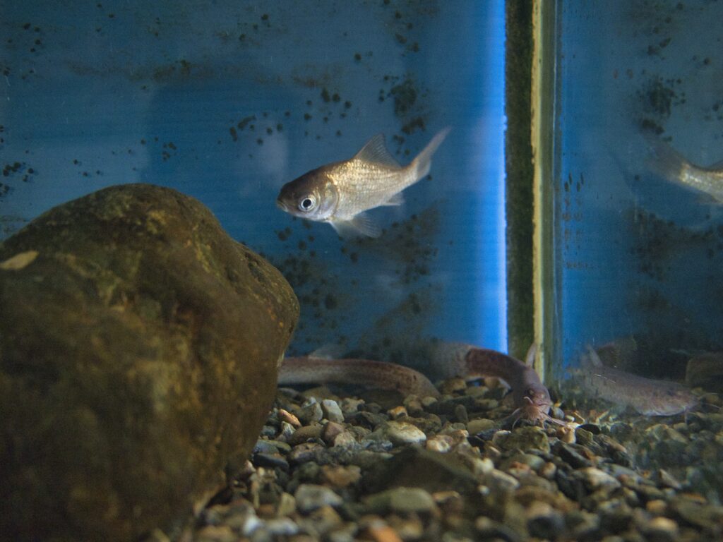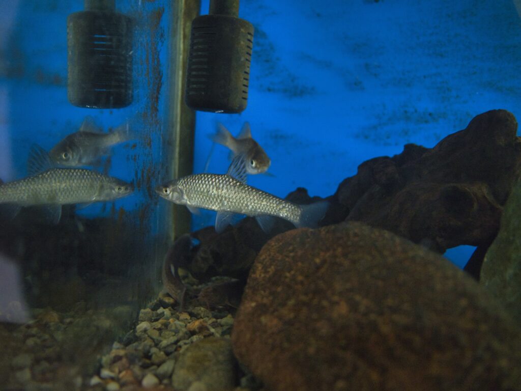 研究対象ではない魚種の水槽ではありますが、おそらく「流れで置いている」タイプの展示と思われます。それでも、訪問者にとっては癒しとなる展示であり、そこにフナがいるというのは、思わぬ喜びでした。