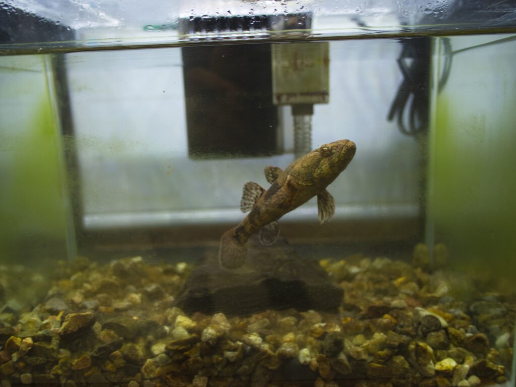 流れのゆるい川や湖の底にすむ魚で、泥や砂の中にひそんで生活します。肉食性で、小魚やエビなどを食べます。