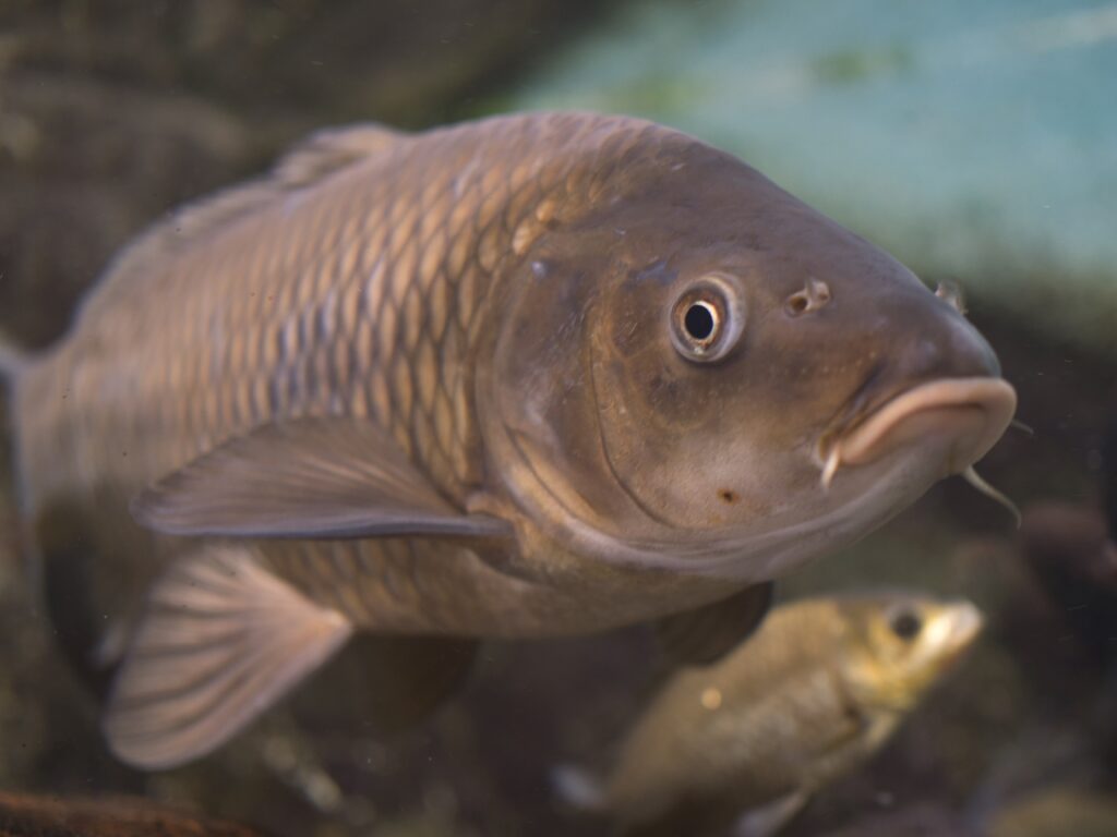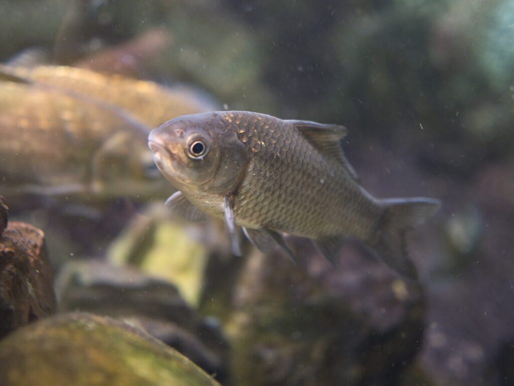 水槽内には体長15〜20cmほどの存在感あるフナたちが泳いでおり、その姿はとても健康的。