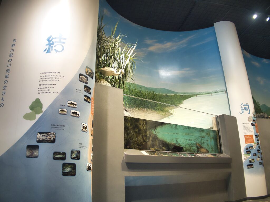 ここでは吉野川から紀ノ川へと流れる川の上流・中流・下流の環境が再現されています。