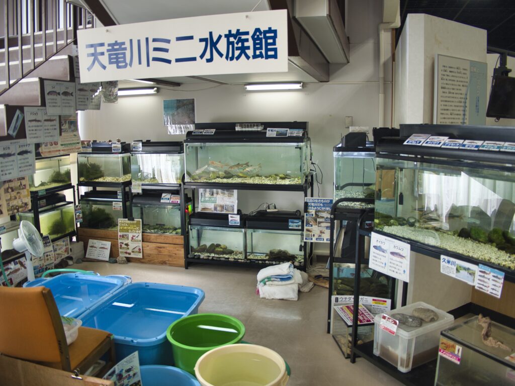 天竜川の自然・歴史・文化・治水をテーマに展示と実験設備が充実し、川魚のミニ水族館、立体模型、図書室、サイエンスラボなどを備えています。