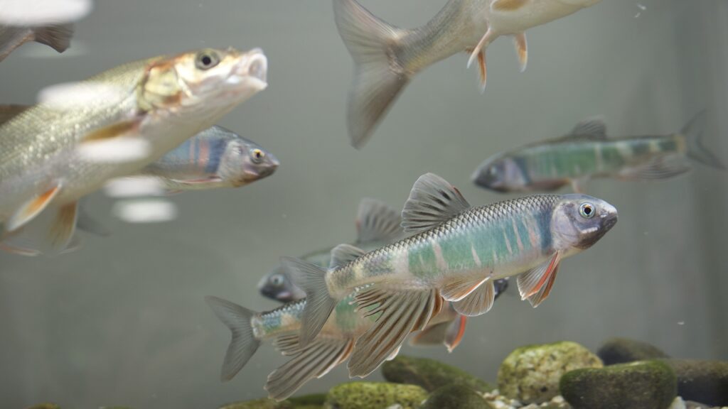 天竜川には渓流から下流まで多様な環境が広がり、イワナやアマゴなどの冷水性魚から、アユやフナ、ウナギといった温暖な水域を好む魚まで幅広く生息しています。
