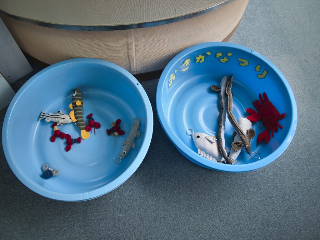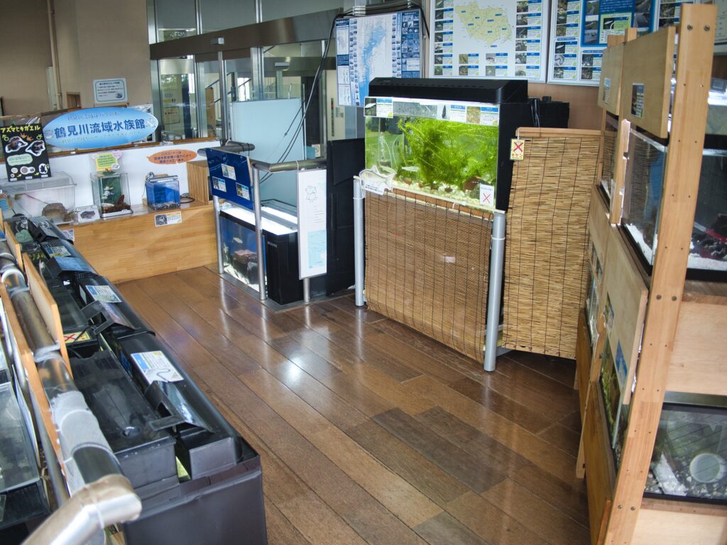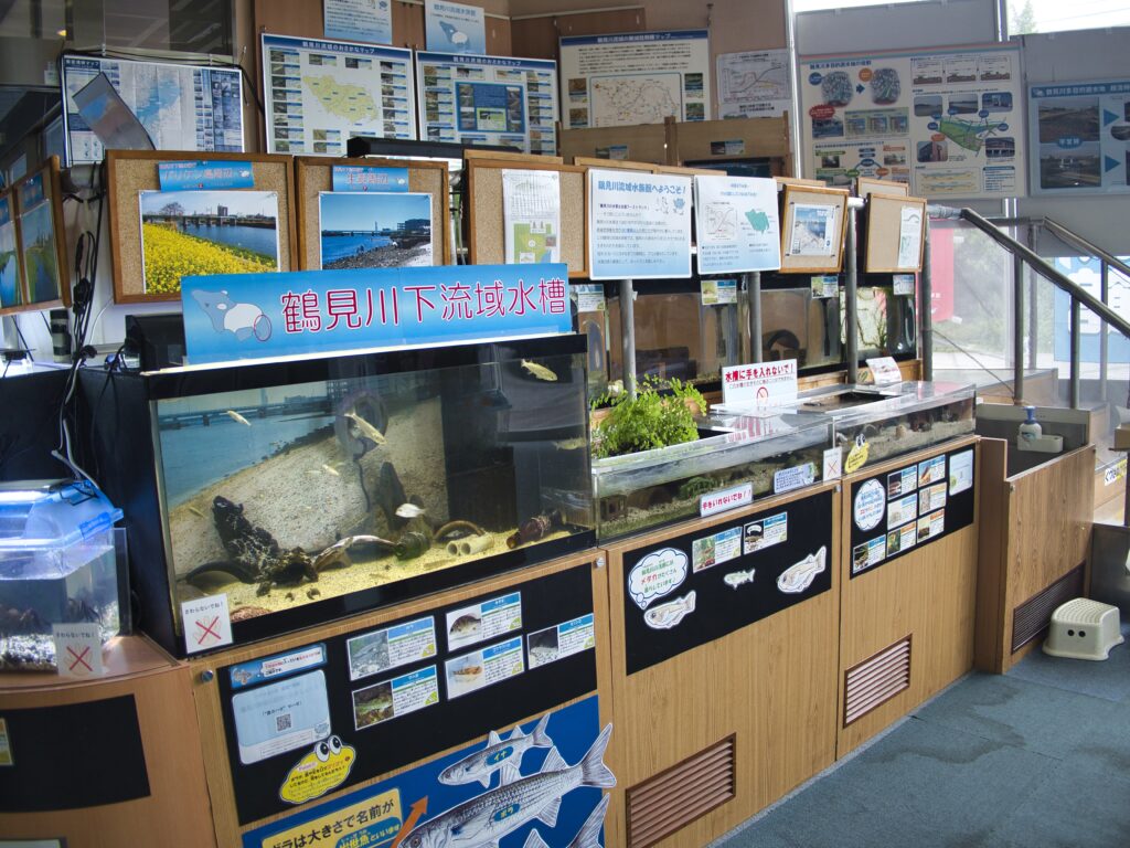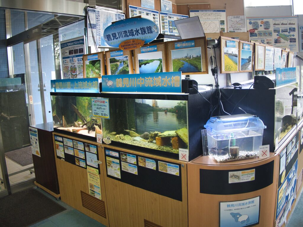 国土交通省が運営する鶴見川流域センターの2階には、「わくわく水族館」という水槽展示コーナーがあります。