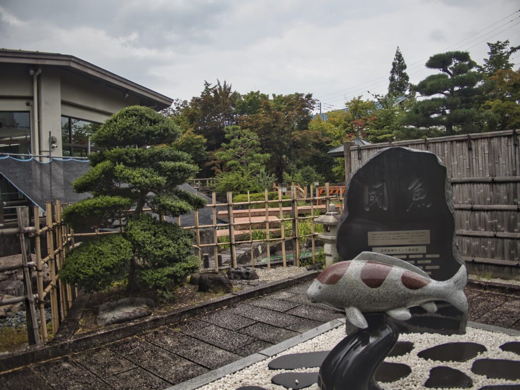 敷地内には、日本庭園—with 滝や橋を配した池—、屋内の観賞池、歴史や品種、飼育法を学べる資料展示室があり、訪れる人は優雅に泳ぐ錦鯉を楽しみながら学ぶことができます 。