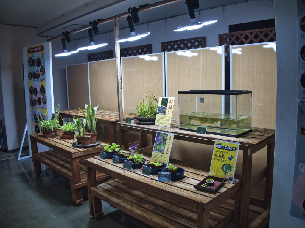 展示の中で唯一の水槽には、日本に自生する水生食虫植物「タヌキモ」が展示されていました。