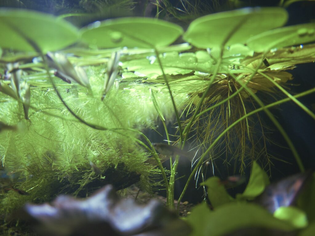 そこではコンゴテトラやアフリカンランプアイといった熱帯魚が泳ぎ、緑の中で輝く姿が印象的でした。