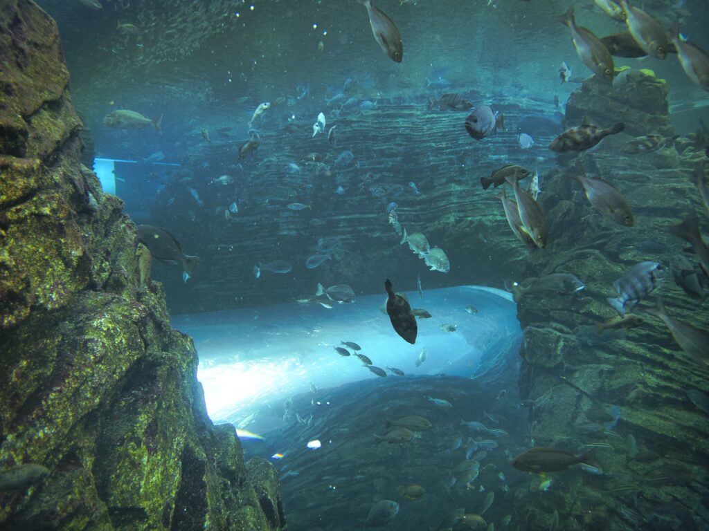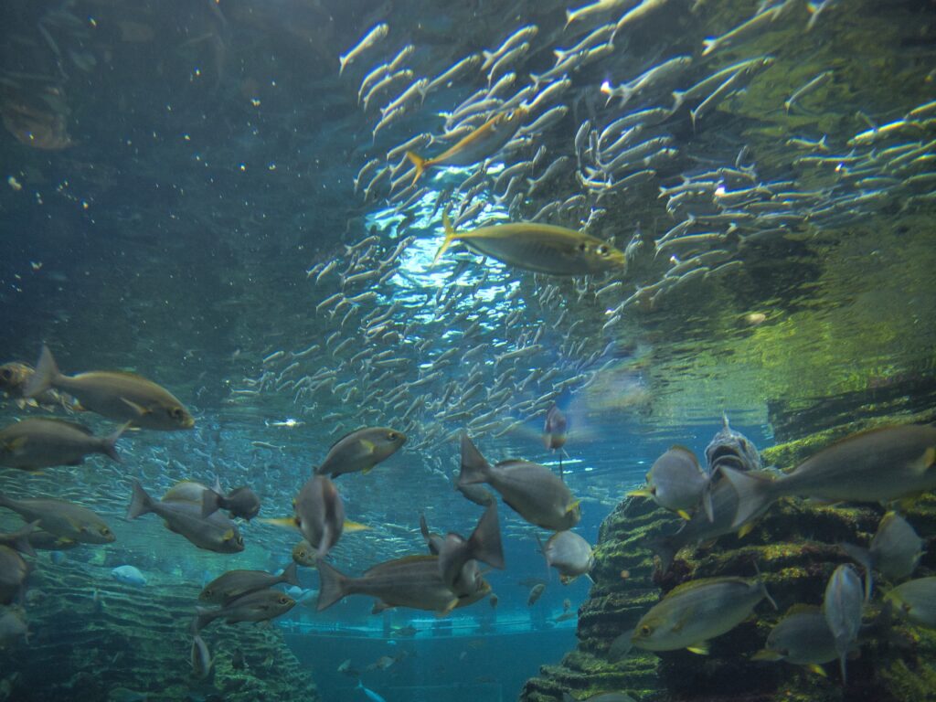 館内は一つの大水槽を中心に、順路を下りながら様々な角度から魚たちを観察できる構造で、まるで大阪の海遊館に近い印象を受けます。