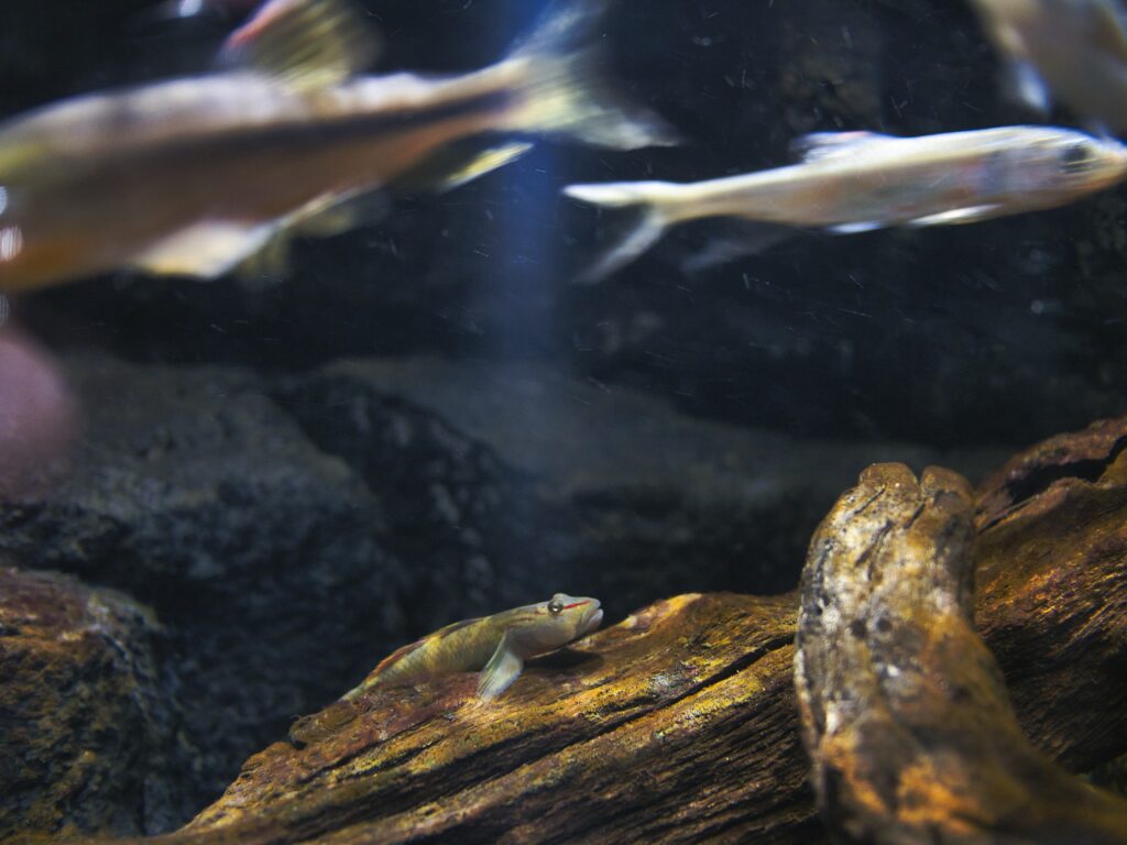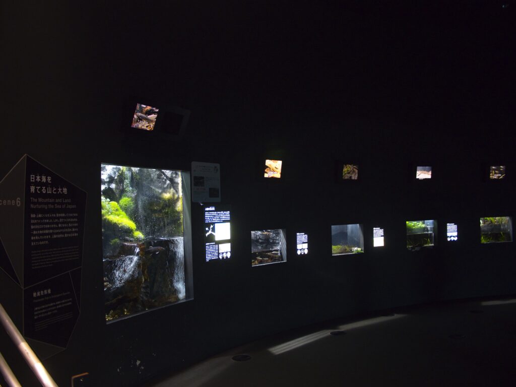海中トンネルを抜けた先には「日本海を育てる山と大地」というテーマの淡水水槽コーナーがあります。