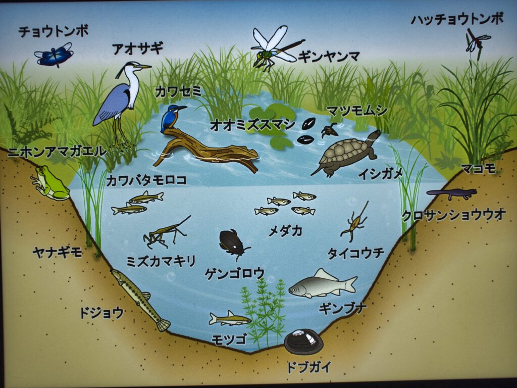 解説パネルの「湖沼にくらす生きもの」にはギンブナのイラストが描かれており、思わず期待してしまいました。