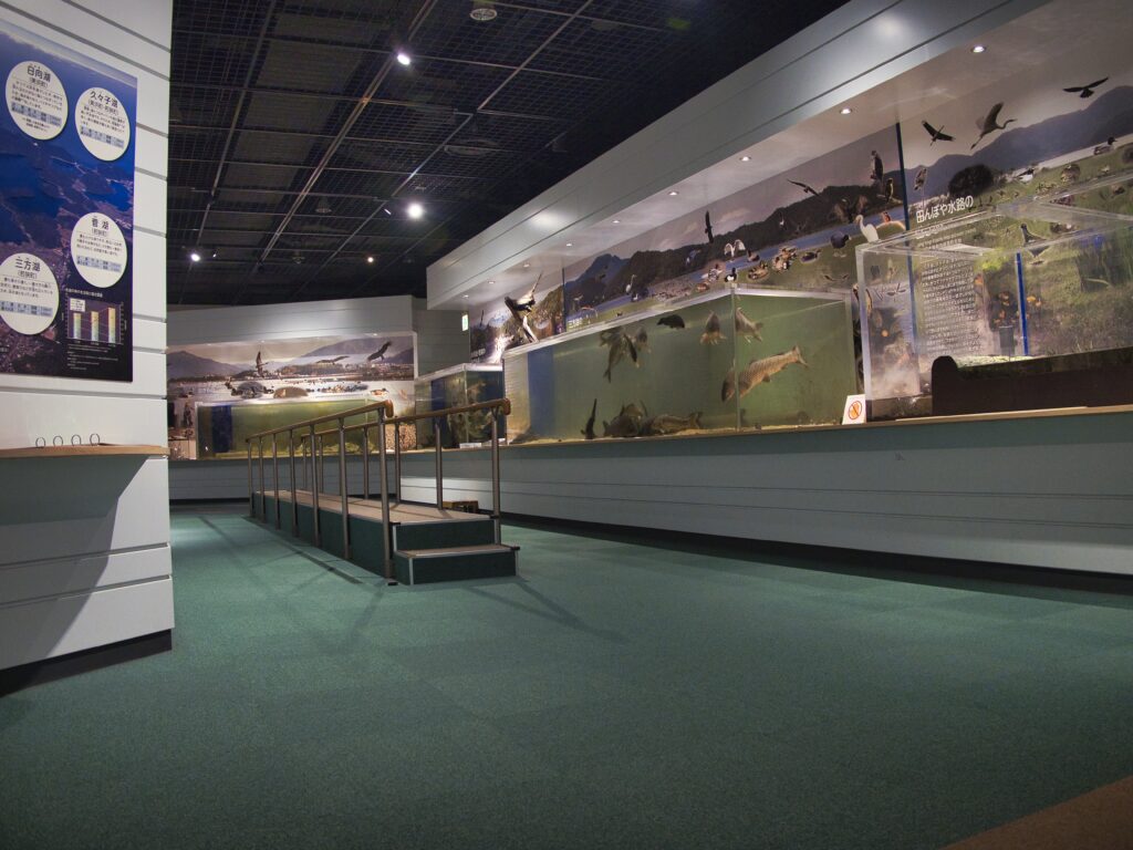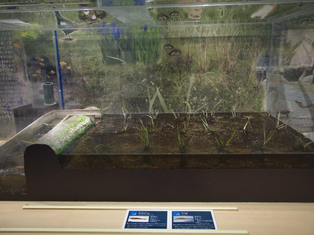 2階へ上がると、前回同様に「田んぼの展示」「三方湖や水月湖、菅湖の水槽展示」「ラムサール条約や固有種紹介の展示」が広がっていました。地域に根ざした生態系の紹介は、この施設ならではの強みです。