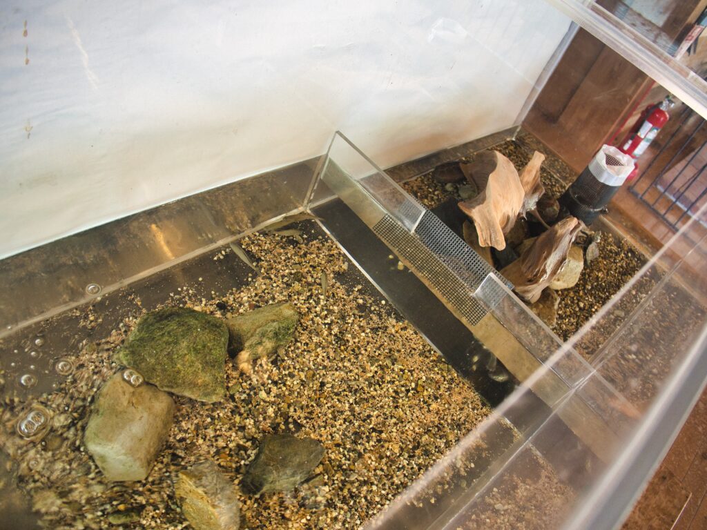 入り口にはキタノメダカの水槽があり、「水系によって種が異なる」という解説付き。魚好きでなくとも興味をそそられる内容でした。