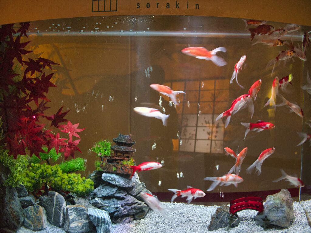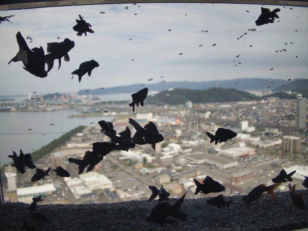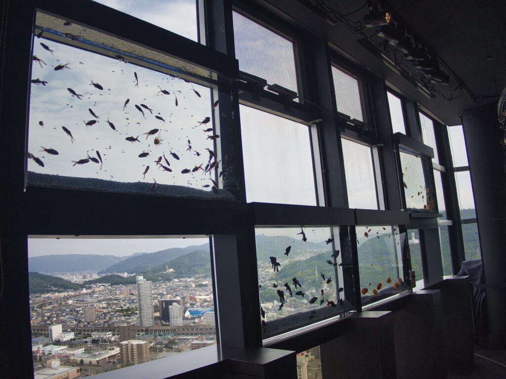 「ソラキン(空金)」は、香川県のゴールドタワー最上階に設けられた「空飛ぶ金魚水族館」。