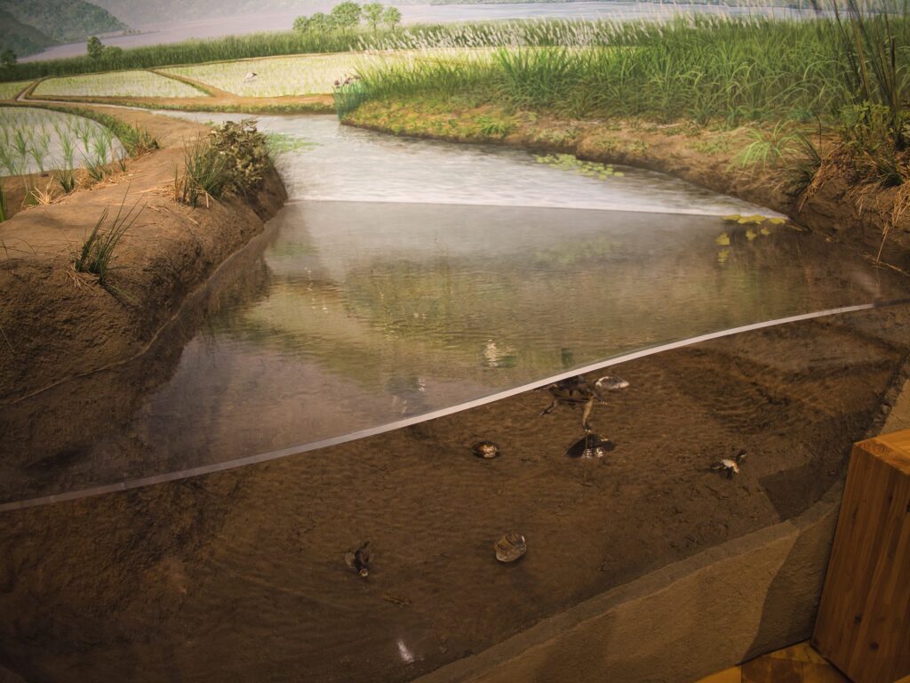 また、田んぼや河川のジオラマの中には、フナのレプリカも登場。