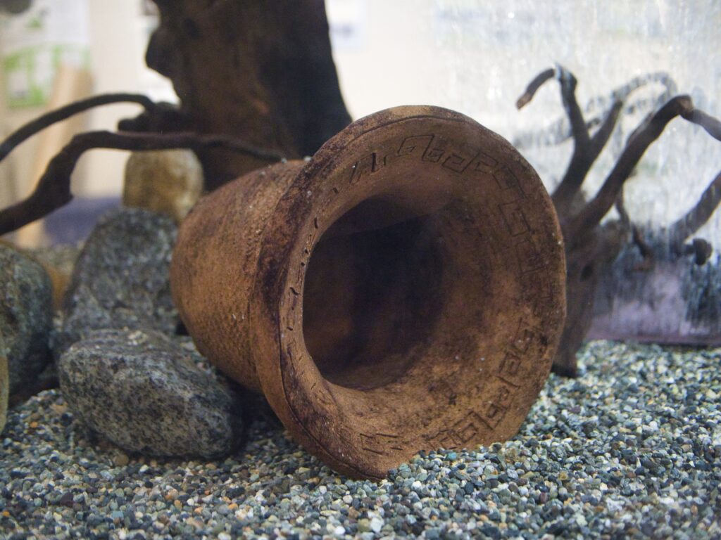 レイアウトで特筆すべきなのは、縄文土器が隠れ家として使用されている点です。