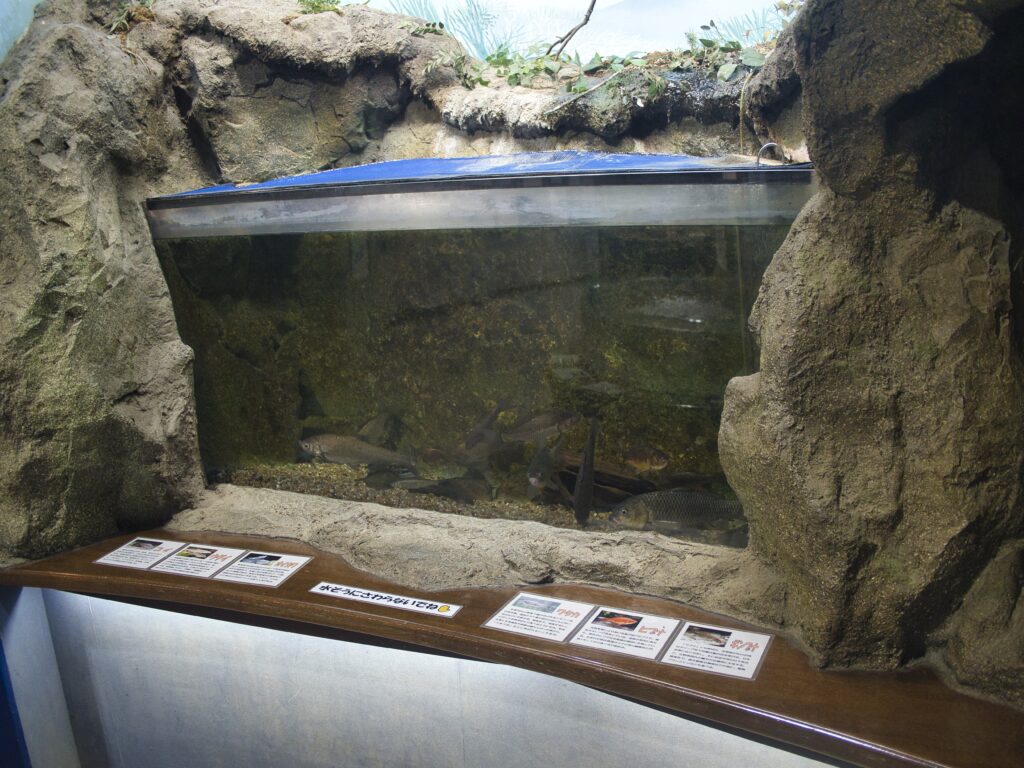 小貝川ふれあいネイチャーセンターのミニミニ水族館は、決して派手な大型水族館ではありませんが、フナをはじめとした淡水魚を丁寧に観察できる、非常に質の高い展示空間です。