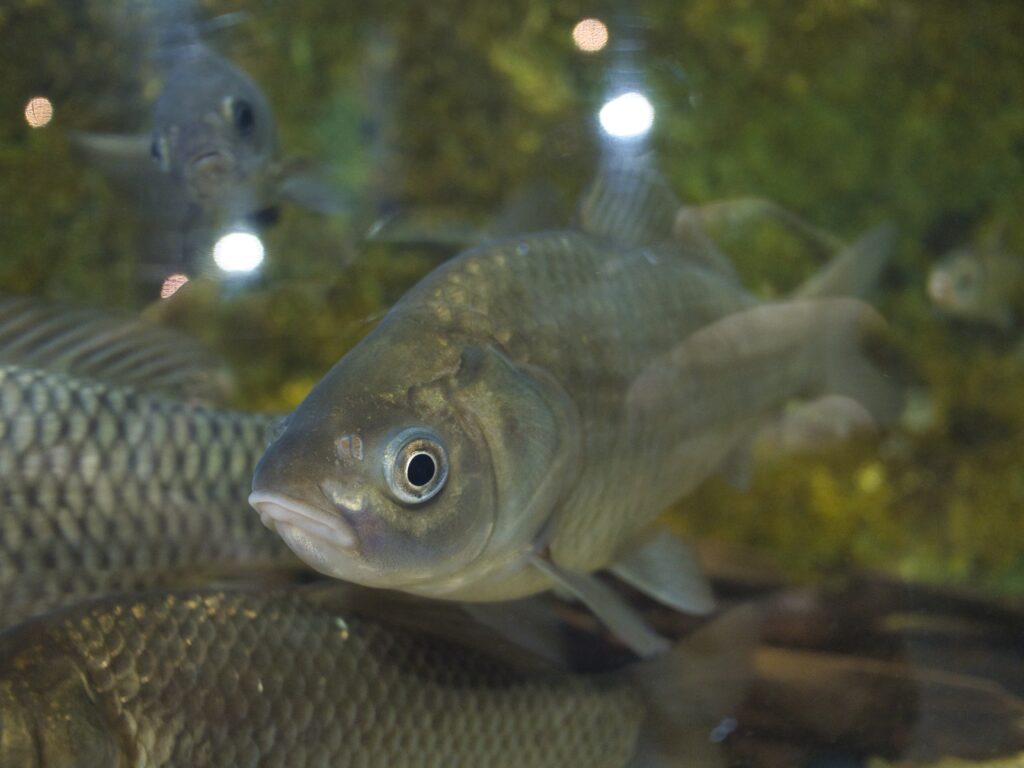 このほかにも、ギンブナやコイに加え、1m級のソウギョやアオウオが泳ぐ大型水槽があり、淡水魚のスケール感を体感することができます。