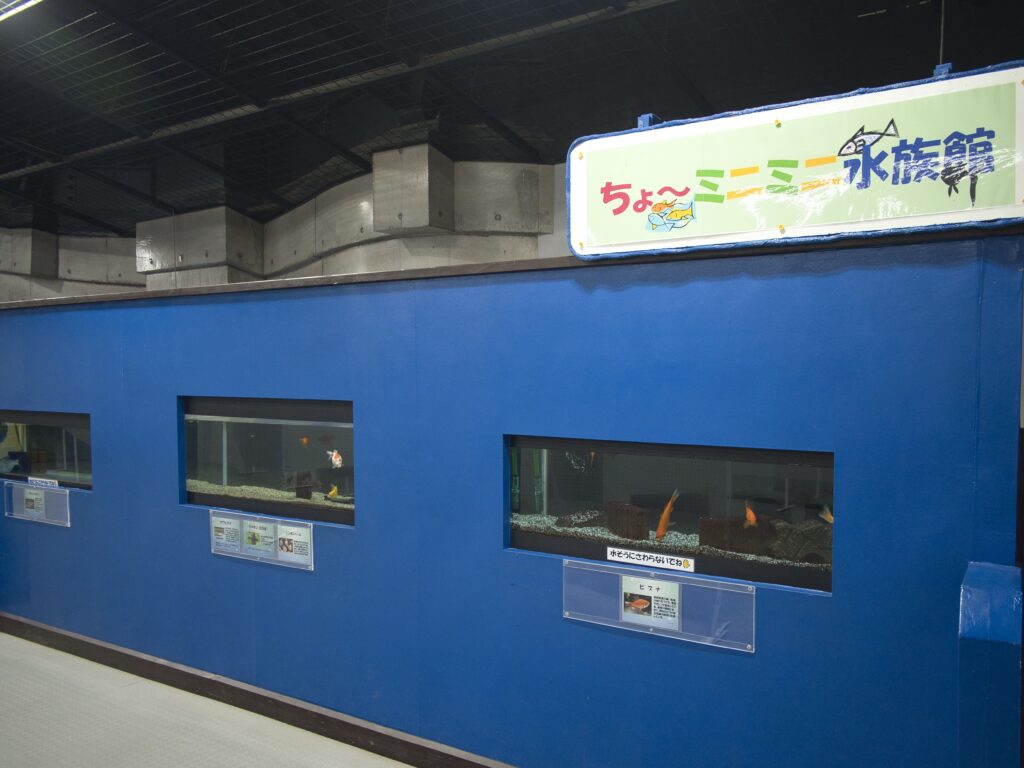 この施設の魅力のひとつが、「ミニミニ水族館」と名付けられた淡水魚展示です。