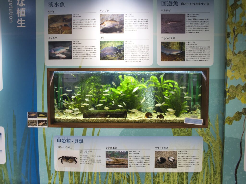 水槽展示では、涸沼に関わる魚たちの姿を間近で観察でき、汽水という環境がどのような生き物を育んでいるのかを実感できます。