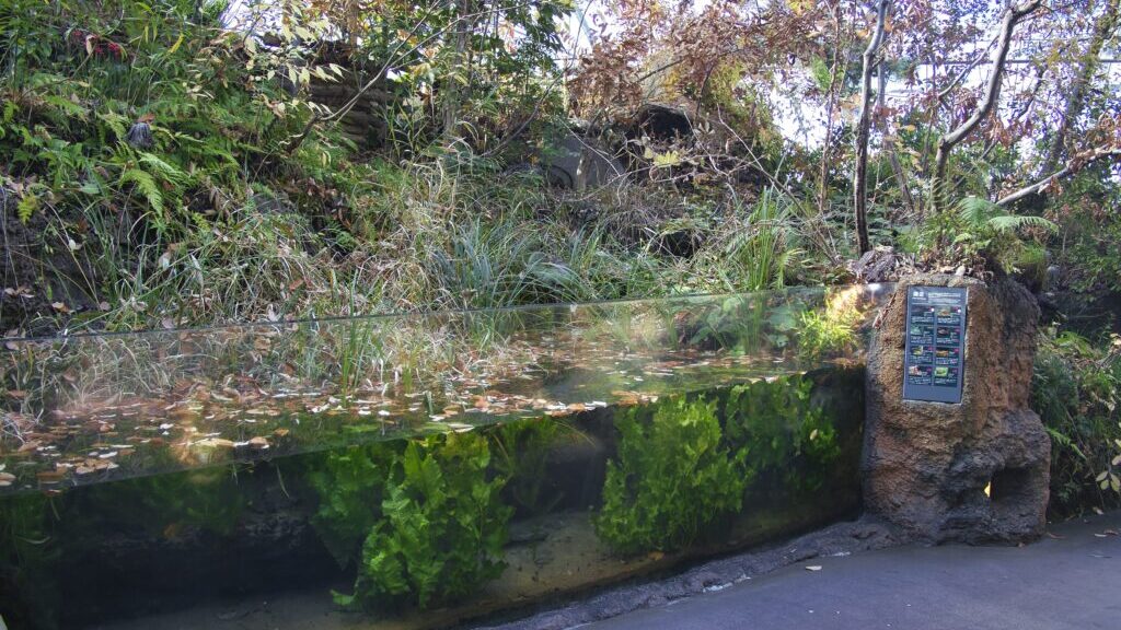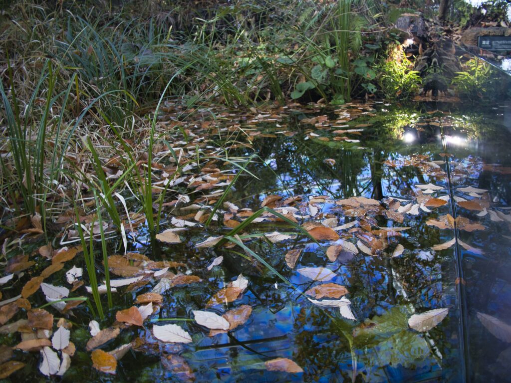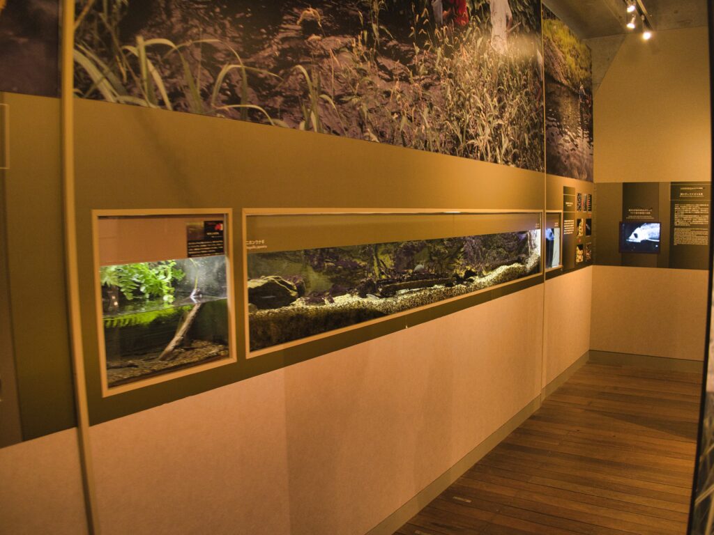 しかし、水槽のサイズや奥行き、豊富な植生によって、「水槽展示」という枠を超え、実際の野山の池を室内に切り取った断面図のような体験が成立しています。自然度と学習性は非常に高い一方で、一般来館者には分かりにくく、素通りされやすい展示である点は惜しいところです。