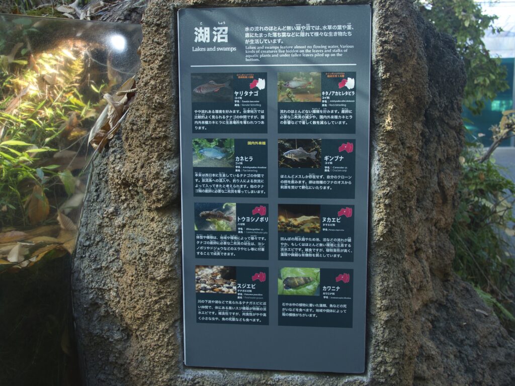 ただし、パネルによって生息が明示されており、「生息しているが見えない」こと自体が展示内容の一部になっています。