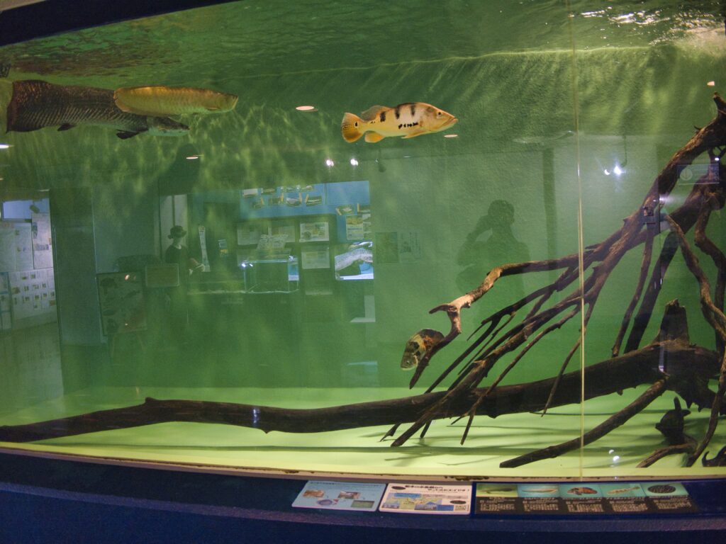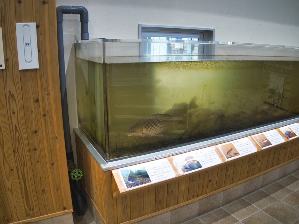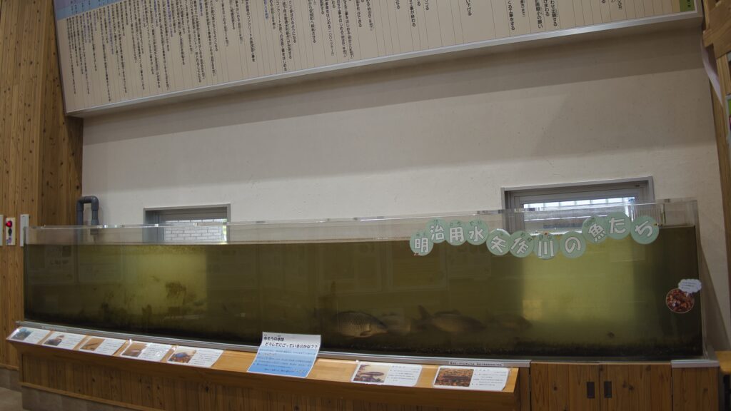 安城市にある「水のかんきょう学習館」にある大型水槽は規模に比べて透明度が悪く、水槽の中に泳ぐフナやコイなどの姿を観察することができません。