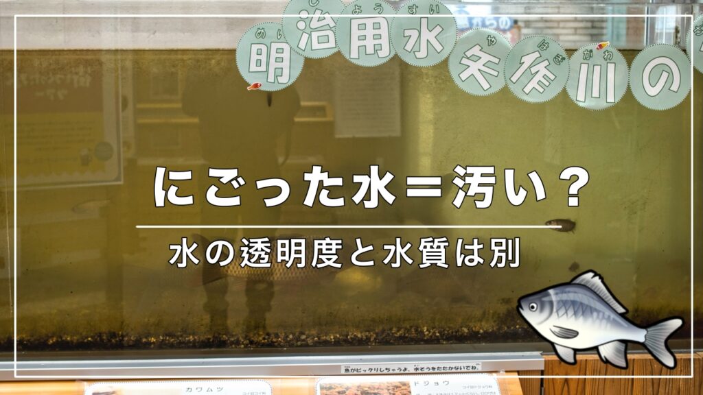 安城市にある「水のかんきょう学習館」にある大型水槽は規模に比べて透明度が悪く、水槽の中に泳ぐフナやコイなどの姿を観察することができません。