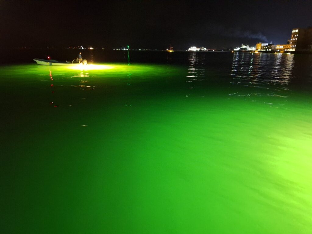 本格的な集魚灯には発電機やバッテリーを用いるものがあり、広範囲に光を届けることが可能です。